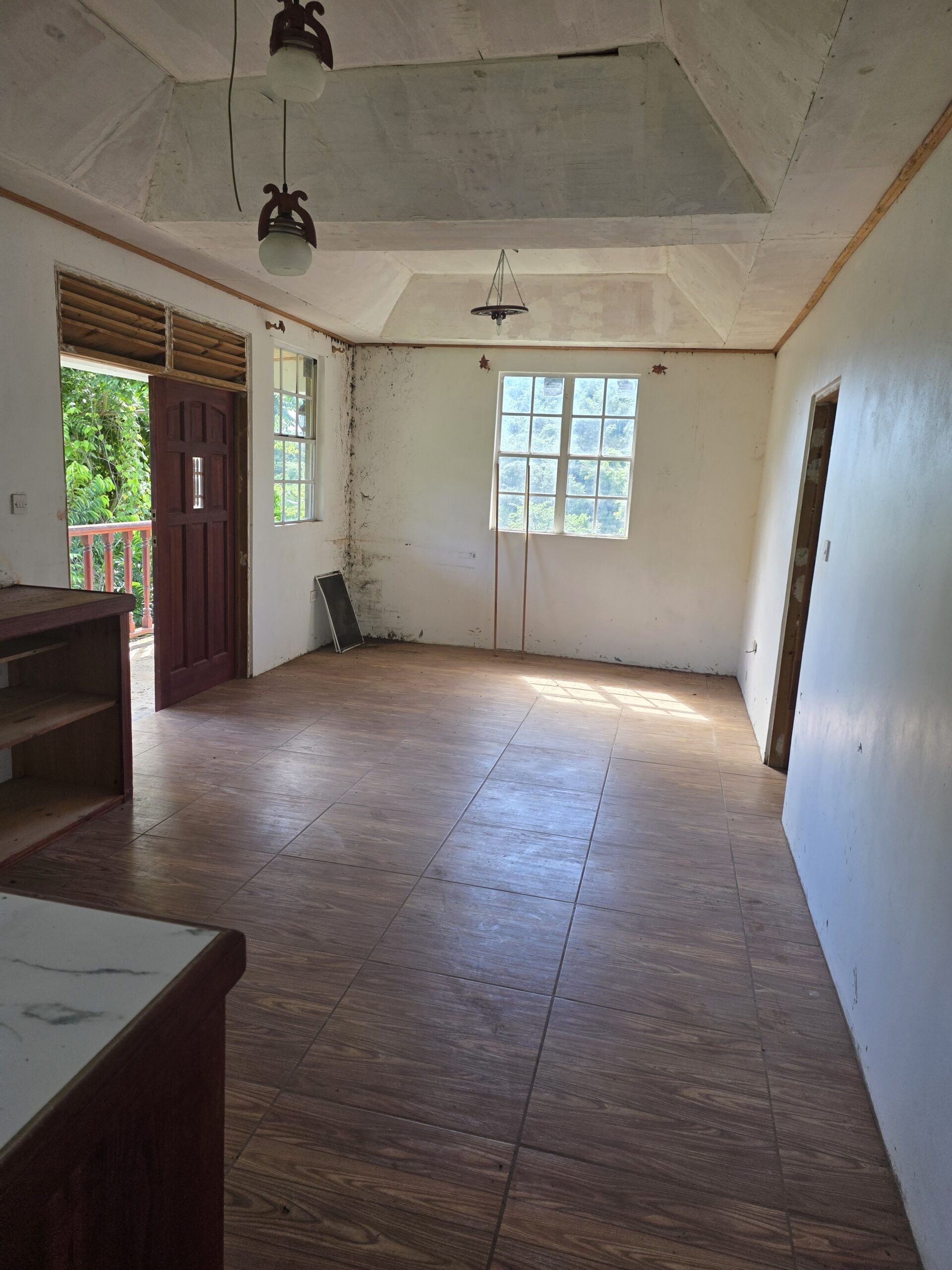 Nestled in a secluded residential neighborhood, this two bedroom one bathroom house at Payard estate Belfast, captures a scenic view of the mountain. With the house elevated on pillars and the available land, there is potential for building the downstairs and extending the existing house.